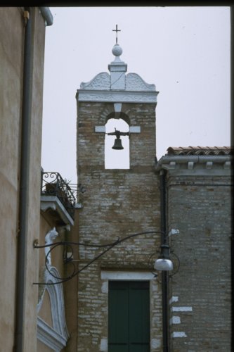 edificio di forma rettangolare, muri perimetrali in mattoni a vista, doppio ordine di finestre, campanile a vela, copertura a tetto in coppi