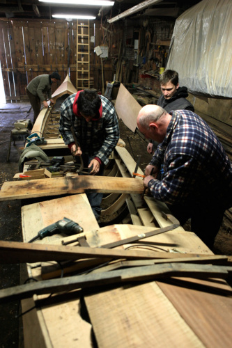Lo squero Tramontin è noto per essere il cantiere più legato alle tecniche tradizionali di costruzione della gondola. Di questo è sicuramente orgoglioso R.T., ultimo discendente di una stirpe di squerarioli che ha segnato profondamente i modelli di gondola prodotti nel corso del Novecento. Nel contempo lartigiano riconosce di essere anche aperto alle innovazioni, quando queste assolvono a delle esigenze contemporanee. Prima fra tutte laumento del moto ondoso causato dal forte traffico in laguna. A questo si deve la scelta di rafforzare la gondola in certi punti con dei perni in acciaio, posizionati in maniera tale da non essere visibili e dunque non modificare lestetica della barca. Lartigiano si dichiara rispettoso del modello elaborato ormai oltre un secolo fa, ma la gondola in quanto mezzo di trasporto attualmente in uso necessita degli adattamenti: «La linea e il sistema di angolazione deve essere standard, lo è da 130 anni, però piccole innovazioni che servono per rendere più solido e duraturo il prodotto #si, mi stago#. In questo momento ho attaccato il #tresso# grande [tavola che unisce trasversalmente le fiancate della gondola]. Si chiama #tresso#, ma sarebbe un #trasto# [sinonimo in gergo di #tresso#], il terzo partendo da poppa. Le cose moderne che po è meglio. Tutto bulloni inox, perché siccome in questo punto #el se iga# [si unisce, si lega] e allora dai, dai, dai coi #ciodi#... sono quintali tutti i secondi con le onde, ho pensato di mettere dei perni. Una volta li si aggiungeva uno a uno, ma dopo dieci anni. Io li metto direttamente #a sconder#, una volta quelli vecchi invece li si metteva con il #capeoto che se bruto fora#. La modernità a me va bene, perché rende più solida la barca. Se bisogna combattere il moto ondoso, #dato che no se pol coparli tuti, bisogna sercà de difenderse#. Nei chiodi oggi la zincatura le farò vedere, cè tanto alluminio, ma non ci sono temperi lucidi, mentre una volta erano opachi e groppolosi, perché lo zinco era irregolare. Una cosa #groppolosa agrappa# di più sul legno, mentre una cosa liscia scivola. Allora, in alternativa, si adoperano questi perni. Saranno quindici anni che ho fatto questa innovazione».