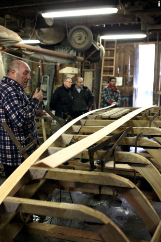 Ogni parte della gondola è fatta con un tipo di legno diverso e la scelta si basa sulle caratteristiche di robustezza, flessibilità, bellezza rispondenti, di volta in volta, alle diverse esigenze. Oltre al genere, anche la provenienza del legno è tenuta in considerazione come fatto determinante di qualità. Con queste precisazioni R.T. ci tiene a comunicare la massima cura con la quale viene garantita la costruzione della gondola presso il proprio squero. «I #trasti# [tavole che uniscono trasversalmente le fiancate della gondola] sono tutti fatti in ciliegio, perché è un legno più facile da essere piegato. Mentre le #nerve#, le fasce superiori (tavole fissate di piatto sopra i #sanconi#, cioè le assi verticali della costolatura), i fianchi, i #córboli# [tavole fissate ad incastro trasversalmente ai #sanconi#] che sono quelle inferiori e le #piane# [tavole orizzontali che formano il fondo della barca] in fondo sono in rovere, perché è solido. Tutta la parte della struttura deve essere solida. Cerco di trovare quello [legno di rovere] francese, che è migliore, anche se è più brutto da vedere, però va bene per far barche, non marcisce. Quello della Jugoslavia è più bello da vedere, magari, costa anche più soldi, però tende a marcire. Ha venature più belle, non per niente tutti i mobili li fanno con quello della Jugoslavia, perché per la maggior parte è tutto a vista. Venatura, colori, sono più belli, per quello. Però in casa non marcisce niente, in una barca è più facile: non è che marcisca, è più facile che marcisca».