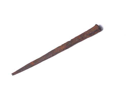 Asta metallica in ferro, di sezione rettangolare e di produzione artigiana, rastremata e appuntita da una parte e priva di capocchia dall'altra.