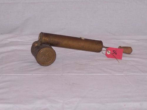 oggetto composto da due cilindri saldati tra loro: il serbatoio, di diametro maggiore ma più corto, è saldato sotto ad un'estremità del pistone, presenta nella parte superiore un'apertura circolare filettata; il pistone è contenuto in un cilindro di diametro minore del serbatoio, ma più lungo, chiuso ad una estremità, sopra il serbatoio, da un cerchio di ottone munito di ugello, serbatoio, mentre, in quella opposta, da un tappo circolare in legno al centro del quale si trova il tondino che guida il pistone con una corta impugnatura in legno.