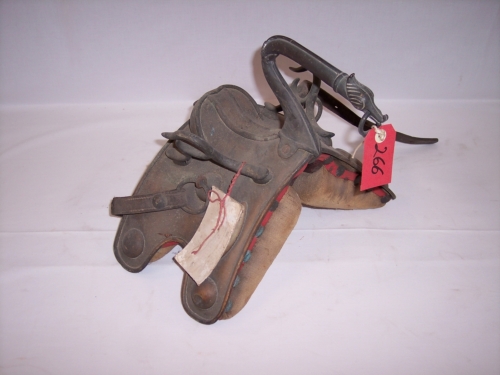 oggetto costituito da un'intelaiatura lignea semicircolare ricoperta di cuoio con al centro fissata verticalmente a forma di gancio una decorazione metallica zoomorfa, mentre ai lati due anelli in ferro e due lacci in cuoio; la parte interna è ricoperta da un'imbottitura di stoffa