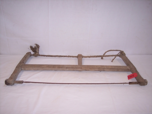utensile in legno di forma rettangolare costituito da una lama rettangolare dentellata fissata alle estremità, mediante tasselli lignei, ad un telaio costituito da un listello ligneo rettangolare (tirante) parallelo alla lama e da listelli lignei (montanti) perpendicolari al listello che li intersecava alla metà come due grandi T contrapposte. Allestremità opposta della lama è fissato un filo di canapa intrecciato (tirante) regolabile mediante listello di legno inserito a metà dell'intreccio della corda e fissato poi al centro del tirante centrale tramite un incavo