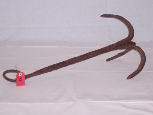 oggetto costituito da una barra di ferro a sezione quadrata (fuso) forata ad un'estremità dove è inserito un anello (cicala); all'altra estremità sono saldati tre bracci ricurvi ad uncino appuntiti