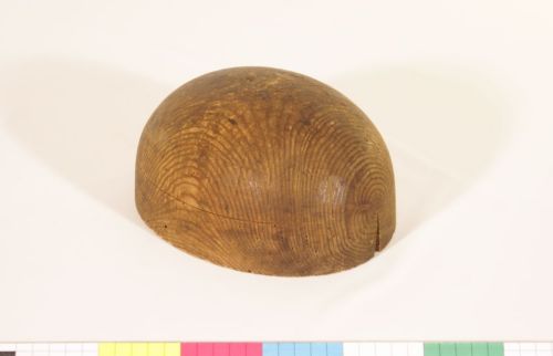 - FUNZIONE E MODALITÀ D'USO modellazione del cappello durante l'intrecciocalotta e ala, che manca, devono corrispondere secondo la taglia, e sono dotate di solchi incisi a raggiera che si dipartono dalla sommità della calotta fin sull'ala per tracciare l'ordito dell'intreccio. Il cappello viene intrecciato sulla forma, i fili di paglia fissati con spilli sulla sommità; un foro nella parte inferiore permette di infilzarla su un palo di sostegno detto #omo#
