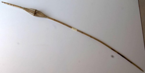 - FUNZIONE E MODALITÀ D'USO attrezzo sul quale la filatrice dispone il materiale per averlo a portata di mano durante la filatura. La filatrice lo tiene mentre lavora sotto il braccio sinistro. In questo caso era usato per filare la canapa.