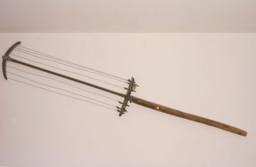 - FUNZIONE E MODALITÀ D'USO taglio della cagliatacon la lira, in questo caso mossa dalla forza delle braccia, si rompeva la cagliata (#cajà#) che si andava addensando nella vasca di cottura (caldaia, #caliéra#); era utilizzato nelle malghe o nei piccoli caseifici