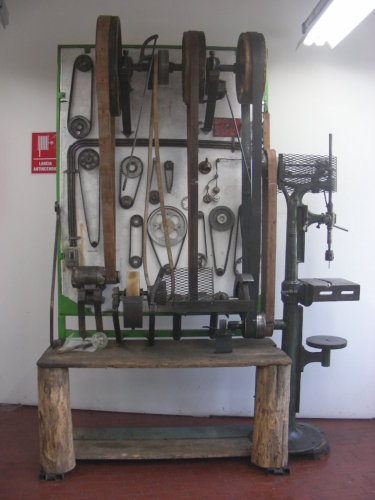 - FUNZIONE E MODALITÀ D'USO Banco da lavoro in legno attrezzato con pannello a cui sono fissati diversi modelli di alberi con pulegge di diverse dimensioni e materiali.