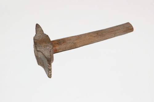 FUNZIONE E MODALITÀ D'USOusata sia nellultima fase della levigatura sia nella rifinitura della superficie lapidea, #martelinàr#. Lascia un segno più strisciato e allungato della bocciarda. Questa martellina in particolare era da #scaiàr#, cioè serviva per il lavoro di rettifica delle superfici fatto battendo di spigolo