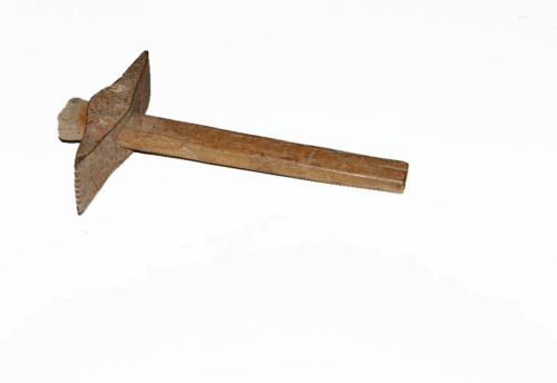 FUNZIONE E MODALITÀ D'USOusata sia nellultima fase della levigatura sia nella rifinitura della superficie lapidea, #martelinàr#. Lascia un segno più strisciato e allungato della bocciarda. Questa martellina in particolare era da #scaiàr#, cioè serviva per il lavoro di rettifica delle superfici fatto battendo di spigolo