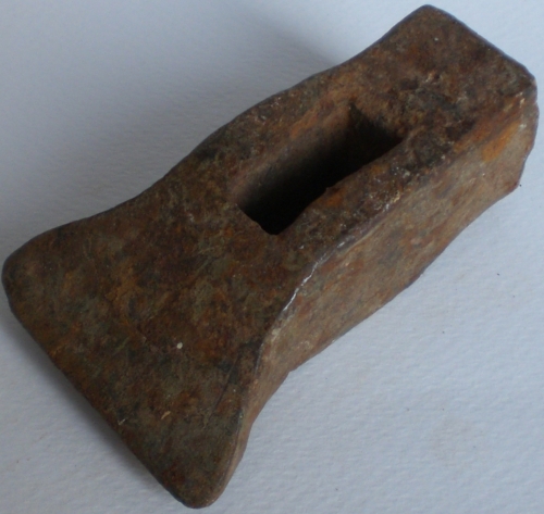 • FUNZIONE E MODALITÀ D'USO usata sia nell’ultima fase della levigatura sia nella rifinitura della superficie lapidea, #martelinàr#. Lascia un segno più strisciato e allungato della bocciarda. Questa martellina in particolare era da #scaiàr#, cioè serviva per il lavoro di rettifica delle superfici fatto battendo di spigolo