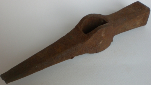 • FUNZIONE E MODALITÀ D'USO usata sia nell’ultima fase della levigatura sia nella rifinitura della superficie lapidea, #martelinàr#. Lascia un segno più strisciato e allungato della bocciarda. Questa martellina in particolare era da #scaiàr#, cioè serviva per il lavoro di rettifica delle superfici fatto battendo di spigolo