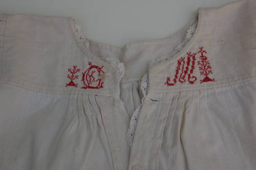 - NOTIZIE STORICO CRITICHE Pizzi e merletti ornavano i polsi e l'apertura sul petto della camicia. Sempre sulla parte anteriore della camicia venivano ricamate le iniziali del nome della proprietaria e anche in questo caso con doppia funzione: ornamentale e pratica. Nel grande bucato, infatti, i capi dovevano necessariamente essere contrassegnati, per evitare confusioni o smarrimenti. Esistevano camicie da giorno e camicie da notte, ma spesso un unico capo faceva le due funzioni.