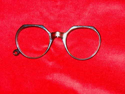 L'esemplare, costruito interamente in materiale sintetico, monta sulla parte superiore degli oculari (quasi rotondi) dei sostegni per le palpebre che hanno perso gran parte della loro mobilità.[Descrizione estratta dal database del Museo dell'Occhiale].