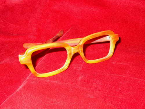 Questa montatura è interamente costruita in plastica colorata in marrone con tonalità ambra. Le astine sono rigide e rinforzate.[Descrizione estratta dal database del Museo dell'Occhiale].