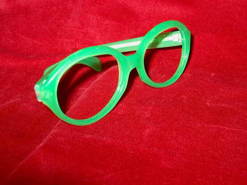 Questo esemplare è completamente in plastica colorata in verde. Le astine sono rinforzate.[Descrizione estratta dal database del Museo dell'Occhiale].