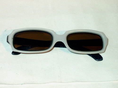 Questa montatura è costruita con celluloide bicolore (ghiaccio - nero) e mostra oculari dalla forma rettangolare.[Descrizione estratta dal database del Museo dell'Occhiale].