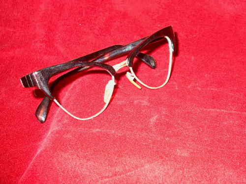 Questa montatura ha la mascherina e le astine in materiale sintetico colorato in marrone e gli oculari in metallo.[Descrizione estratta dal database del Museo dell'Occhiale].