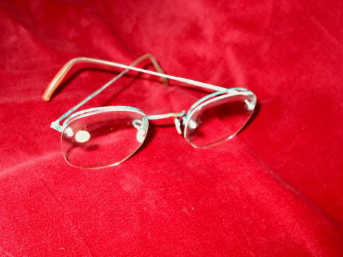 L'esemplare, del tipo con montatura a giorno, porta la mascherina in metallo ed i terminali delle stine sono ricoperti con materiale plastico. [Descrizione estratta dal database del Museo dell'Occhiale].