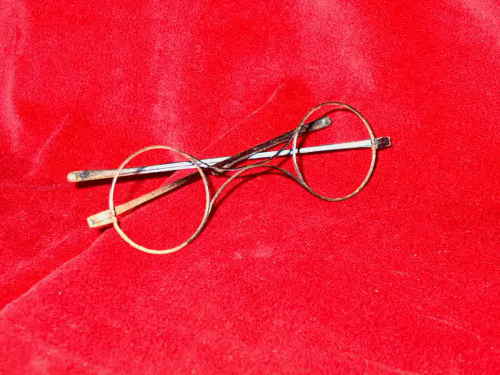 Esemplare, con ponte a "K", monta lenti rotonde ed astine ripiegabili. [Descrizione estratta dal database del Museo dell'Occhiale].