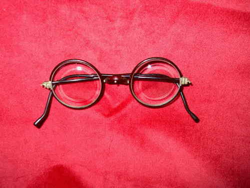 Questo esemplare è in metallo completamente rivestito con materiale sintetico. Monta lenti rotonde, bianche. [Descrizione estratta dal database del Museo dell'Occhiale].