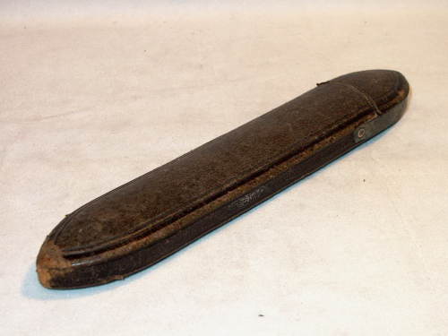 Astuccio in cartapesta di forma ogivale con terminale basculante.