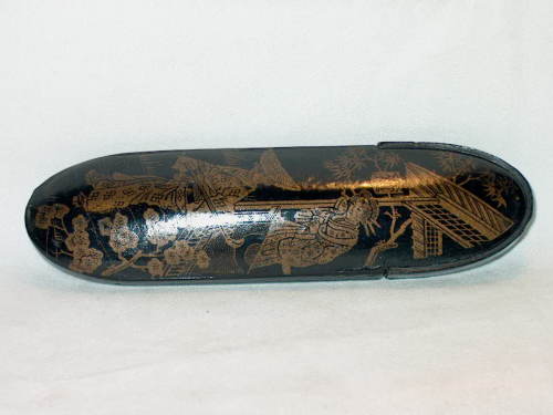 Astuccio in cartapesta tronco-ovale, con cisenerie su fondo oro.