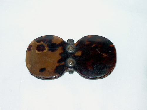 L'astuccio in tartaruga è a forma di otto. L'inserimento dell'occhiale pùò avvenire indistintamente sia dalla parte superiore che da quella inferiore, in quanto è formato da due coperchi uniti da quattro borchie centrali passanti. Su uno dei lati è inciso il nome Spinoza, il che fa attribuire la provenienza alla Spagna o all'Italia durante l'occupazione spagnola.