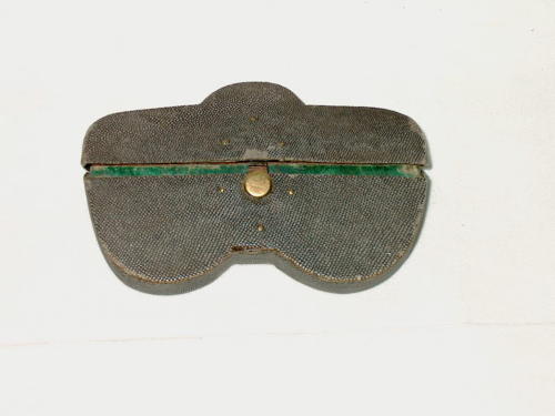 Astuccio per occhiale ad arco in squalo nero, predisposto per due paia di occhiali. L'astuccio è a scatola con coperchio basculante.