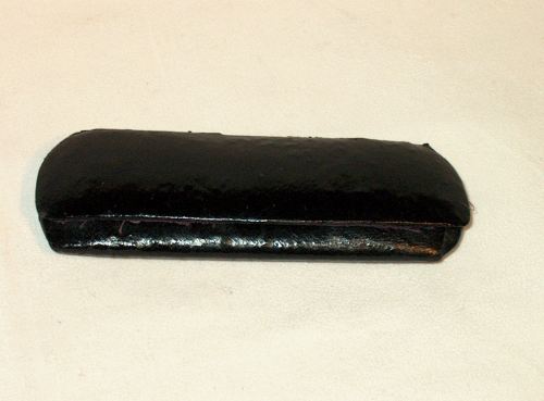 L'astuccio di forma quasi rettangolare è ricoperto di pelle nera. All'interno rivestitura in velluto viola e tagliando triangolare: Paul Schaer / 94 Rue Neuve / Bruxelles Tel. 17.84.41