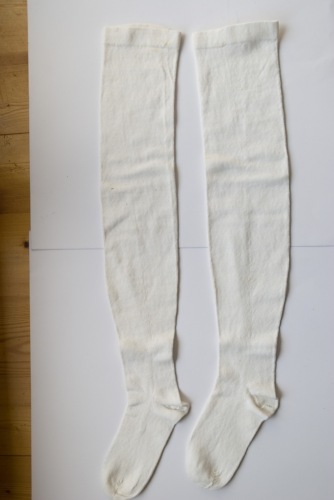 - NOTIZIE STORICO CRITICHE I bordi superiori presentano solitamente un gioco di costine che offre elasticità o una rifinitura smerlata. La parte durevole è il gambale; punta e calcagno erano frequentemente rimagliati o rafforzati, ma l'intera soletta era spesso sostituita e confezionata a parte (Tiziana Ribezzi in G.P. Gri, Modi di vestire, modi di essere, 2003: 237). Una forma di abbigliamento ben definita e consolidata dalla tradizione della professione è quella delle balie da latte: giovani madri che a pochi mesi dal parto lasciavano il proprio figlio per recarsi nelle città ad allattare quelli dei nobili o dei borghesi, le cui donne non allattavano per non sciuparsi il corpo. Alle balie veniva fornito un abito che era quasi una divisa, di tessuto pregiato, specialmente il grembiule, e cpompletato da una più o meno ricca ornamentazione, a seconda delle possibilità economiche e del grado di ambizione delle famiglie ospitanti. L'abbigliamento della balia era costituito da uno scamiciato di lana, a grandi quadri, da un grembiule di cotone bianco, ma anche di tulle, ricamato e terminante con volants, da una giacca di velluto nero con ricche maniche, sul capo una cuffia o fazzoletto bianchi [...]; le calze erano di cotone bianche e le scarpe di cuoio, nere, con tacco basso [...].