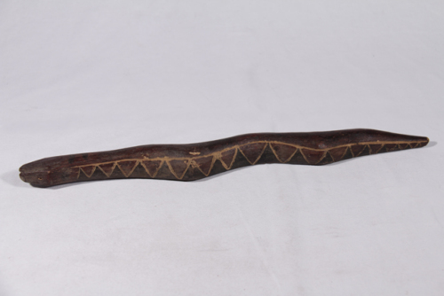 Vi sono alcune decorazioni incise sul legno a formare l'immagine di un serpente.