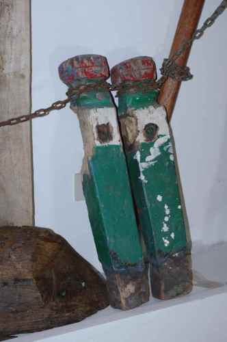 La bitta, di piccole dimensioni, ha grossomodo la forma di un parallelepipedo a base quadrata: in basso, dove si inseriva nella coperta, la sezione gradualmente si restringe, mente in alto, in corrispondenza della sede delle corde, si rastrema assumendo sezione circolare; questa parte è sormontata da una testa cilindrica più grossa.