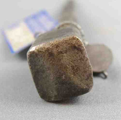 Chiodo a sezione quadrata; la testa presenta una certa ricercatezza nella lavorazione: ha forma di tronco di piramide a base quadrata.