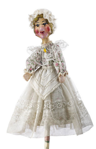 cartapesta, colla di farina di grano, legno, stoffe di cotone e sintetica, colore a olio, ferro, cordino