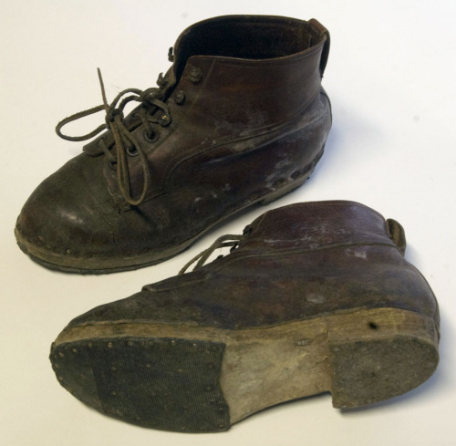 - FUNZIONE E MODALITÀ D'USO paio di calzature da ragazzo con suola in legno e tomaia in cuoio, realizzate su modello antico per un giovane del Gruppo Folkloristico di Cesiomaggiore
