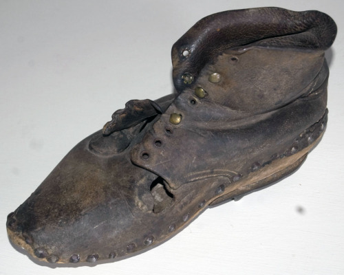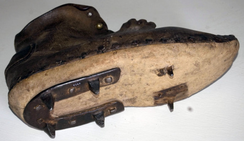 - FUNZIONE E MODALITÀ D'USO calzatura del piede destro con suola in legno e tomaia in cuoio; utilizzata dai lavoratori addetti alla fluitazione del legname