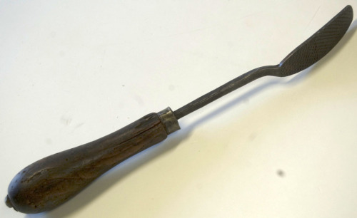 - FUNZIONE E MODALITÀ D'USO utilizzato per eliminare le teste dei chiodi di legno eventualmente fuoriusciti dal rivestimento in pelle applicato nella parte interna della suola delle scarpe