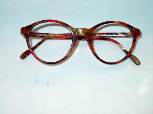 Questa montatura per occhiali da sole è in materiale sintetico colorato in rosso ad effetto madreperla. All'interno dell'astina sinistra: Ben.Sun 732 29 48-19 140 e su quella destra: United Colors Of Benetton Frame Italy. Sui terminali: all'interno - United Colors Of Benetton e all'esterno - Benetton. [Descrizione estratta dal database del Museo dell'Occhiale].