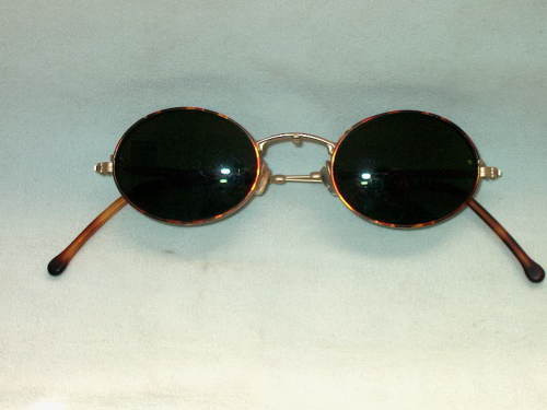 Gli occhiali in metallo colorato sono composti da due mascherine perfettamente sovrapponibili. Gli oculari esterni sono cololrati con smalto cinese. Le lenti sono colorate grigio-verde. All'interno dell'astina sinistra: Innovative Eyewear Clip U.S. Pat. Pend. All'interno dell'astina destra: Mod. in 101 42-21 Da Made in Italy. Sulla lente sinistra: Innovative Eyewear. [Descrizione estratta dal database del Museo dell'Occhiale].