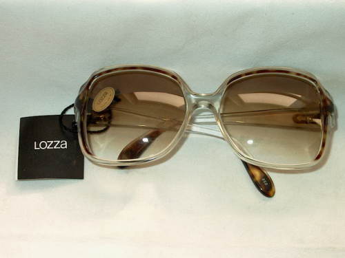 Gli occhiali in materiale sintetico trasparente nella faccia interna ed effetto tartaruga in quella esterna, montano lenti grandi colorate marroncino. All'interno dell'astina sinistra: Madeleine 60-18 All'interno dell'astina destra: 135 Lozza Electa Frame Italy 850 Sulla lente destra: Lozza Filtri CR 39. [Descrizione estratta dal database del Museo dell'Occhiale].