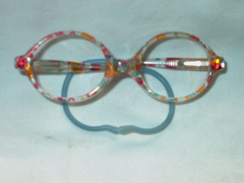 Gli occhiali sono in materiale sintetico variamente colorato e portano i terminali composti da materiale morbido sulle astine. All'esterno: 012. [Descrizione estratta dal database del Museo dell'Occhiale].