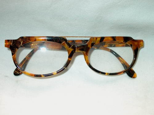 Gli occhiali sono in plastica colorata ad effetto leopardo. [Descrizione estratta dal database del Museo dell'Occhiale].