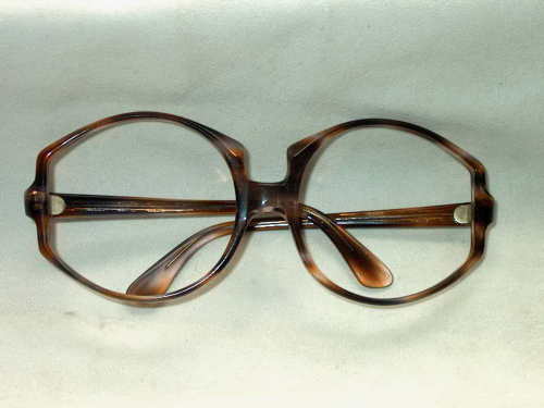 Gli occhiali sono in materiale sintetico colorato nelle sfumature del marrone.