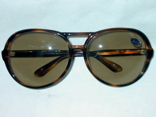 Gli occhiali in materiale sintetico colorato nelle tonalità del marrone montano lenti in base 9 colorate in marroncino. All'interno dell'astina destra: Foca 147 Sulla lente sinistra: cristalio lavorato Foca. [Descrizione estratta dal database del Museo dell'Occhiale].