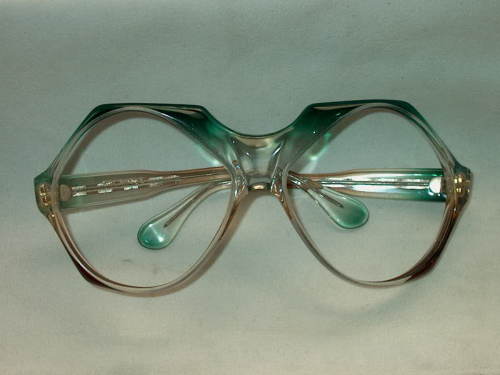 Gli occhiali sono in materiale sintetico colorato nelle sfumature del verde e del marrone. All'interno dell'astina destra: F.O.C.A. 403. [Descrizione estratta dal database del Museo dell'Occhiale].