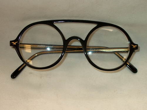 Gli occhiali sono in materiale sintetico trasparente e nero e montano lenti rotonde. All'interno dell'astina sinistra: Giove 1210. All'interno dell'astina destra: Doica Occhiali. [Descrizione estratta dal database del Museo dell'Occhiale].