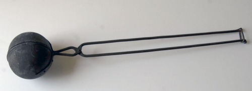oggetto in ferro composto da due semisfere cave, uguali e simmetriche, le cui basi combaciano perfettamente in modo da chiudersi l'una sull'altra a formare un'unica sfera. Alle due semisfere sono fissati con 4 chiodi due lunghi manici mobili, che ruotano attorno ad un perno, costituito da un chiodo, posto più vicino alle semisfere che alle estremità dei manici. L'estremità di un manico termina con un ricciolo mentre l'altra presenta un foro entro il quale è fissato un anello in ferro di forma ovale, che serve da gancio di bloccaggio.