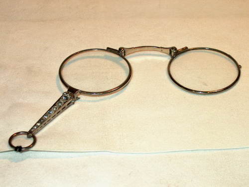 Fassamano in metallo bianco. Sul manico sono incastonati dei finti diamanti.[Descrizione estratta dal database del Museo dell'Occhiale].