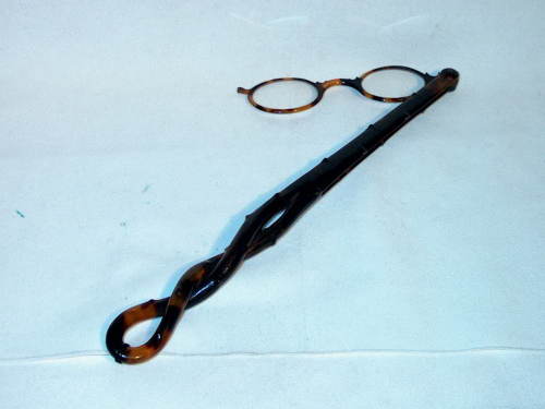 Fassamano a manico lungo in tartaruga. Il manico è costituito da un cappio rigirato su se stesso. [Descrizione estratta dal database del Museo dell'Occhiale]. Fassamano con manico lungo avvolto su se stesso con piccole intaccature.